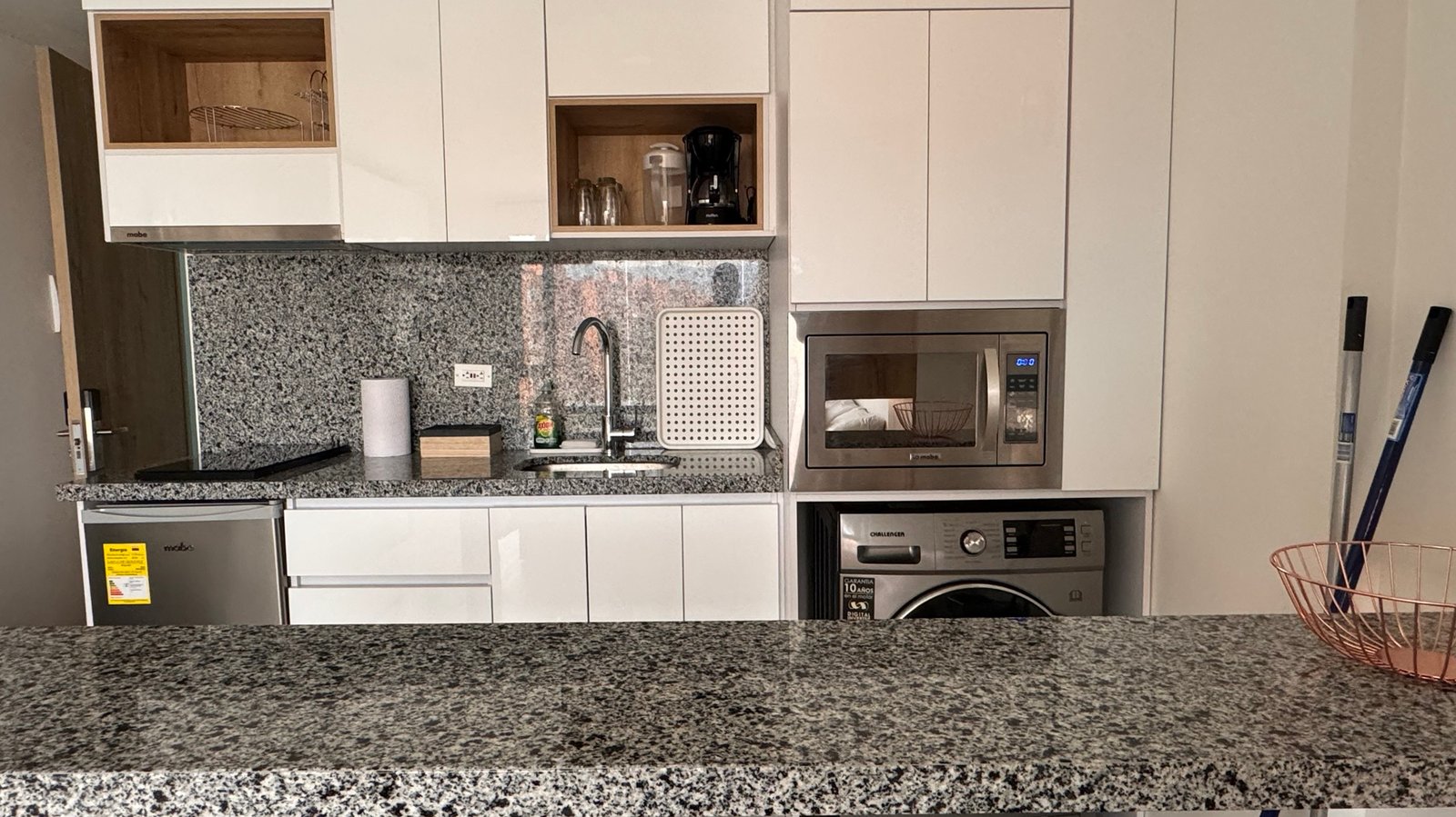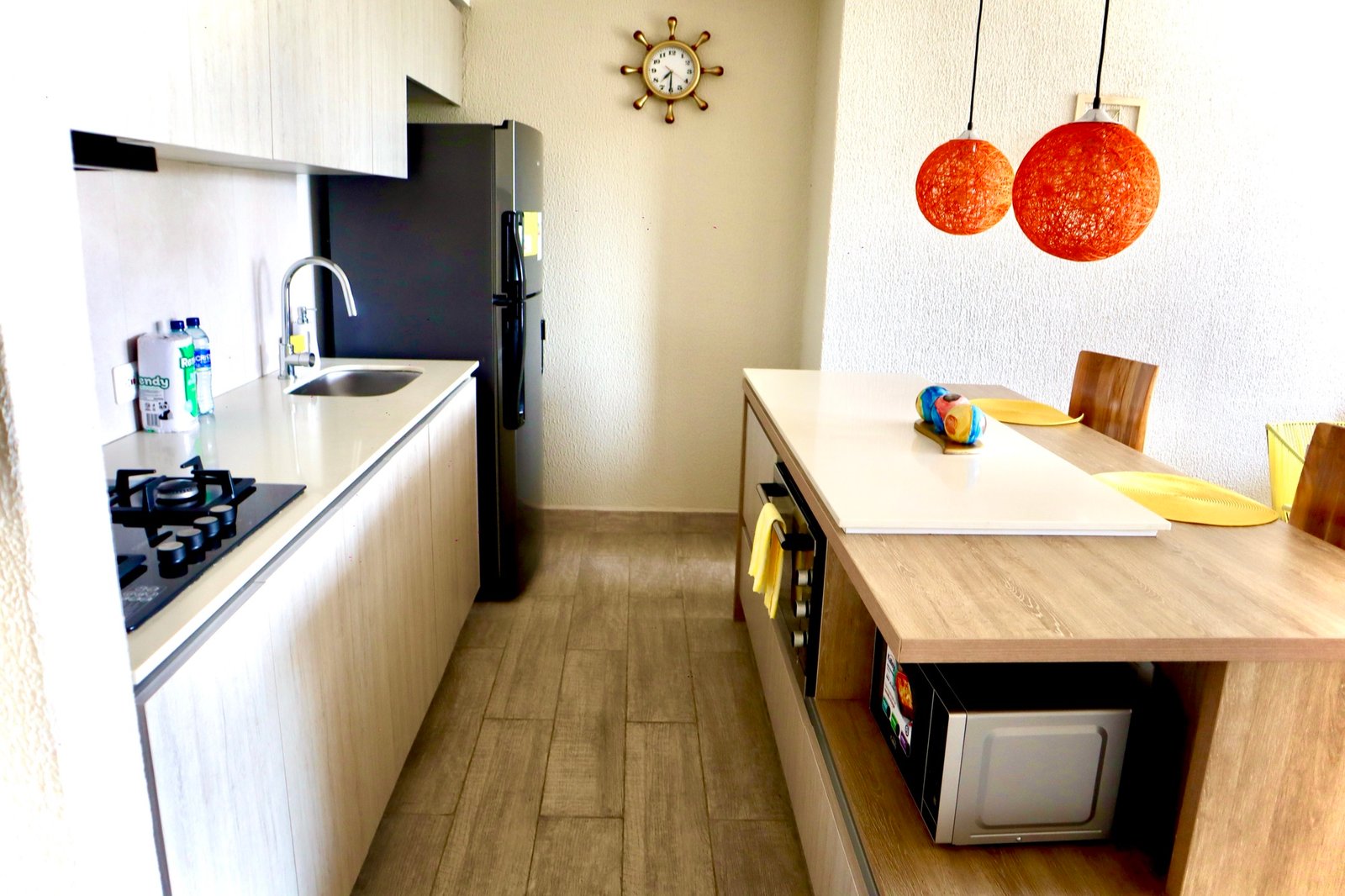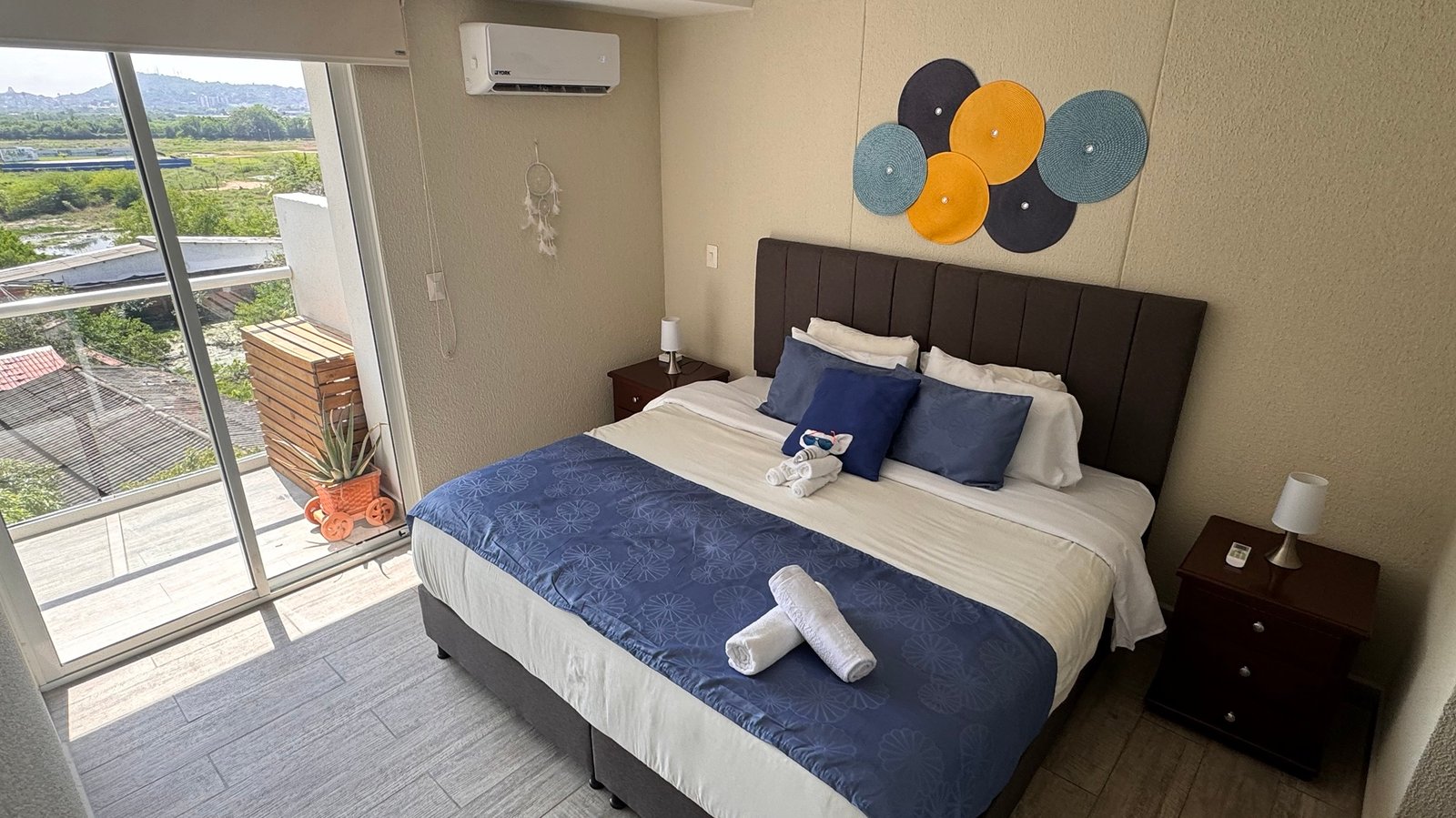 Welcome to a brand new one-bedroom apartment in one of the best areas of Cartagena. This unit has a stunning terrace overlooking the Ciénaga de la Virgen and the sea. The open kitchen is fully equipped with a gas stove, refrigerator, microwave, Pots, a filter Coffee maker, etc.