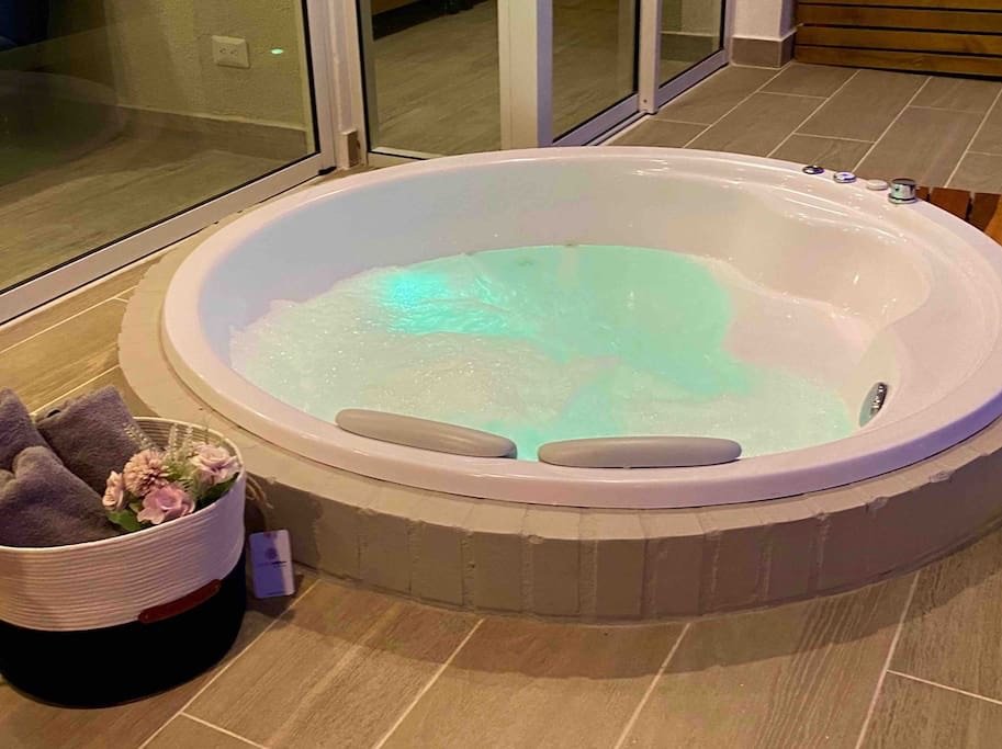 This beautiful apartment offers a private Hydro-massage jacuzzi. Finish your day by relaxing in your own jacuzzi with low music and a glass of wine.