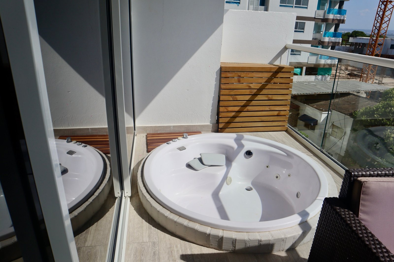 This spacious and modern 1 bedroom with a Jacuzzi on the balcony is located on Cielo Mar – los Morros, Cartagena de Indias, Colombia.